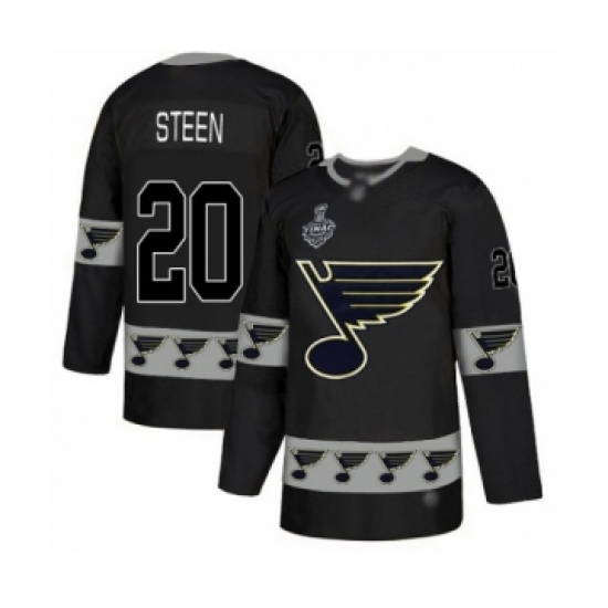 Men's St. Louis Blues #20 Alexander Steen Authentic Black Team Logo Fashion 2019 Stanley Cup Final Bound Hockey Jersey
