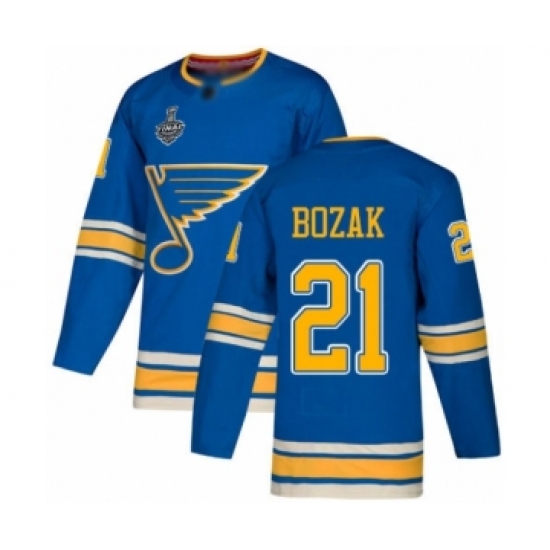 Men's St. Louis Blues #21 Tyler Bozak Authentic Navy Blue Alternate 2019 Stanley Cup Final Bound Hockey Jersey