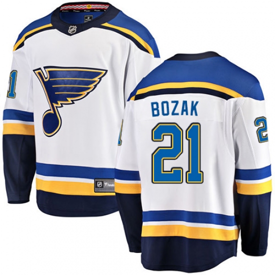Men's St. Louis Blues #21 Tyler Bozak Fanatics Branded White Away Breakaway NHL Jersey