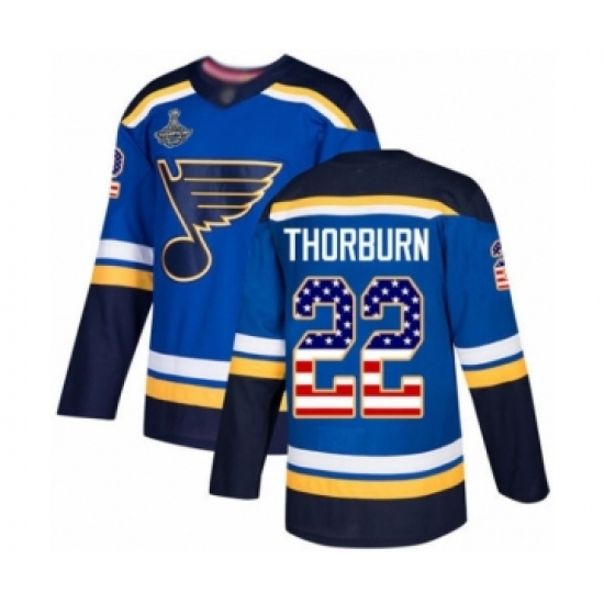 Men's St. Louis Blues #22 Chris Thorburn Authentic Blue USA Flag Fashion 2019 Stanley Cup Champions Hockey Jersey