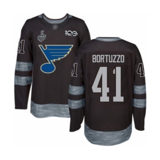 >Men's St. Louis Blues #41 Robert Bortuzzo Authentic Black 1917-2017 100th Anniversary 2019 Stanley Cup Final Bound Hockey Jersey