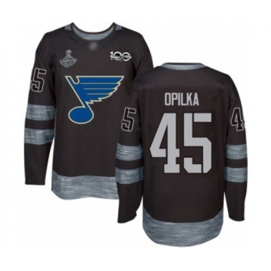 Men's St. Louis Blues #45 Luke Opilka Authentic Black 1917-2017 100th Anniversary 2019 Stanley Cup Champions Hockey Jersey