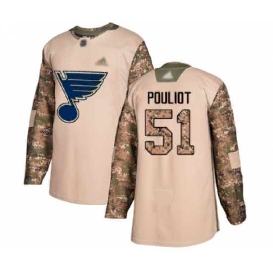 >Men's St. Louis Blues #51 Derrick Pouliot Authentic Camo Veterans Day Practice Hockey Jersey