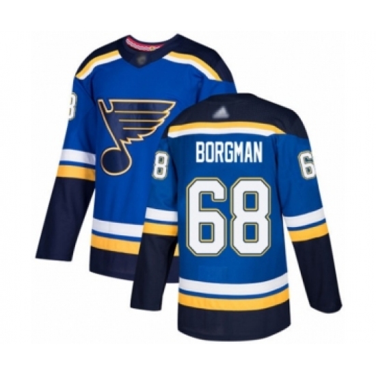 >Men's St. Louis Blues #68 Andreas Borgman Authentic Royal Blue Home Hockey Jersey