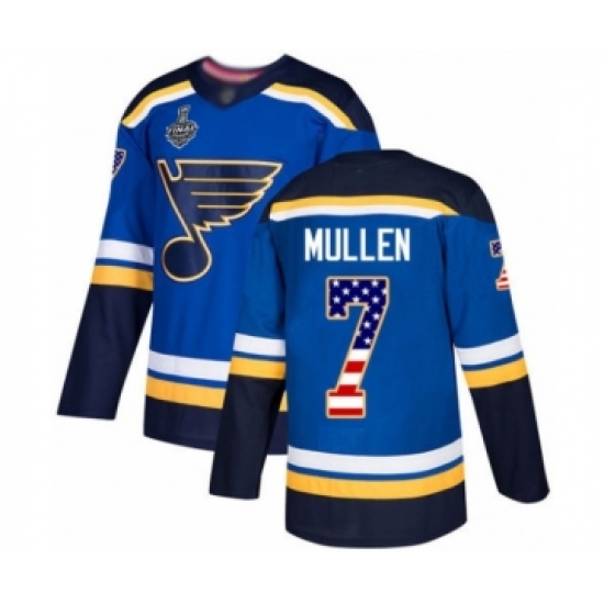 Men's St. Louis Blues #7 Joe Mullen Authentic Blue USA Flag Fashion 2019 Stanley Cup Final Bound Hockey Jersey