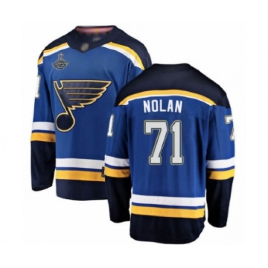 >Men's St. Louis Blues #71 Jordan Nolan Fanatics Branded Royal Blue Home Breakaway 2019 Stanley Cup Champions Hockey Jersey