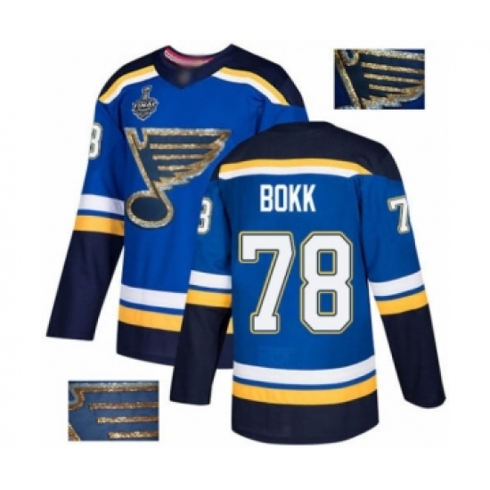 >Men's St. Louis Blues #78 Dominik Bokk Authentic Royal Blue Fashion Gold 2019 Stanley Cup Final Bound Hockey Jersey