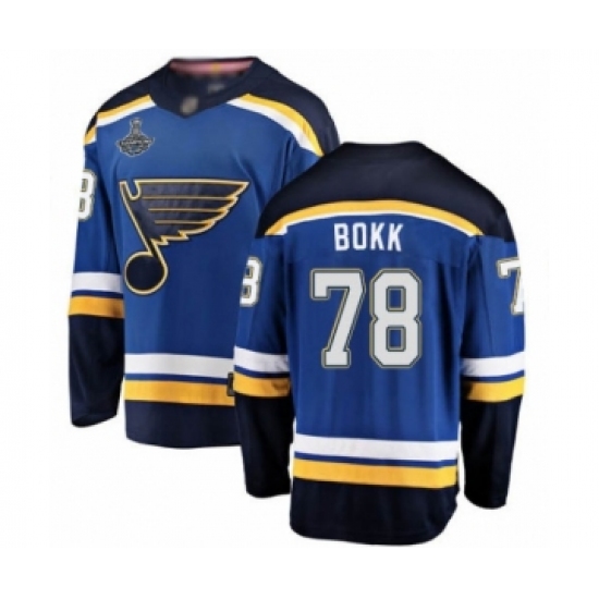 >Men's St. Louis Blues #78 Dominik Bokk Fanatics Branded Royal Blue Home Breakaway 2019 Stanley Cup Champions Hockey Jersey