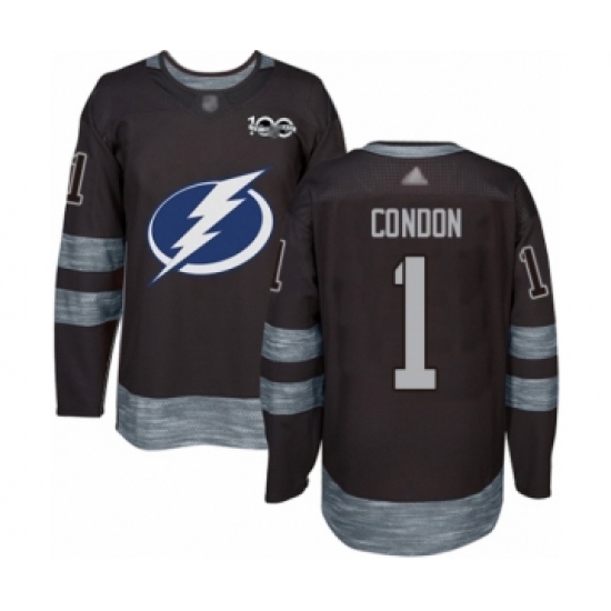 Men's Tampa Bay Lightning #1 Mike Condon Authentic Black 1917-2017 100th Anniversary Hockey Jersey