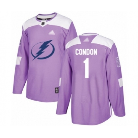 Men's Tampa Bay Lightning #1 Mike Condon Authentic Purple Fights Cancer Practice Hockey Jersey