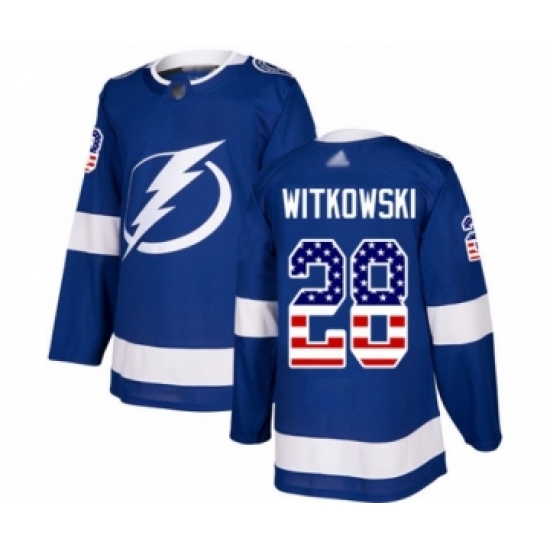 Men's Tampa Bay Lightning #28 Luke Witkowski Authentic Blue USA Flag Fashion Hockey Jersey