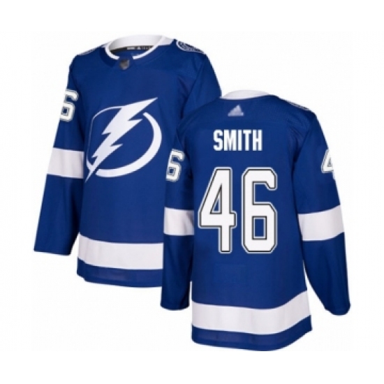 >Men's Tampa Bay Lightning #46 Gemel Smith Authentic Royal Blue Home Hockey Jersey