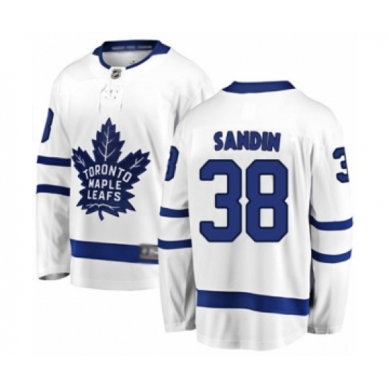 >Men's Toronto Maple Leafs #38 Rasmus Sandin Authentic White Away Fanatics Branded Breakaway Hockey Jersey