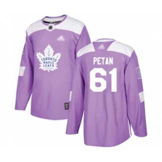 >Men's Toronto Maple Leafs #61 Nic Petan Authentic Purple Fights Cancer Practice Hockey Jersey