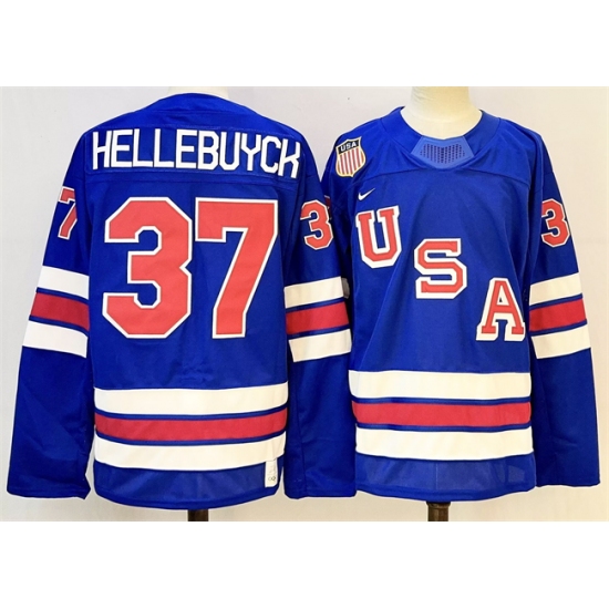 >Men's USA #37 Connor Hellebuyck Royal 2025-2026 Stitched Jersey