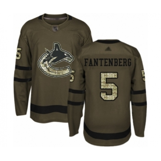Men's Vancouver Canucks #5 Oscar Fantenberg Authentic Green Salute to Service Hockey Jersey