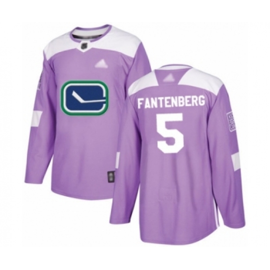 >Men's Vancouver Canucks #5 Oscar Fantenberg Authentic Purple Fights Cancer Practice Hockey Jersey