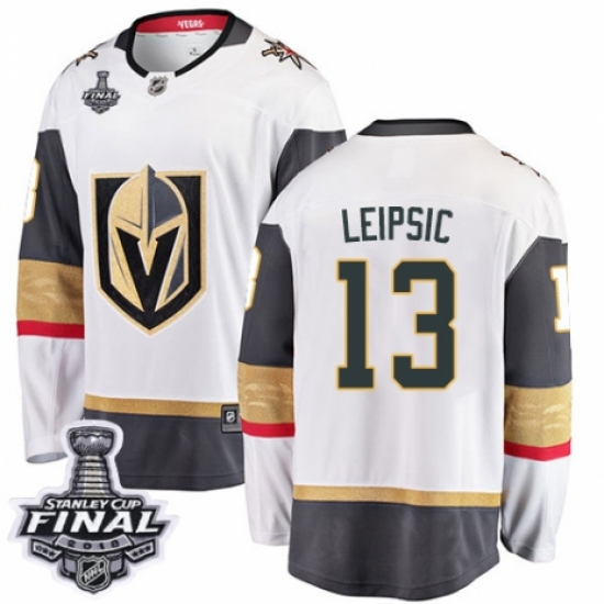 Men's Vegas Golden Knights #13 Brendan Leipsic Authentic White Away Fanatics Branded Breakaway 2018 Stanley Cup Final NHL Jersey