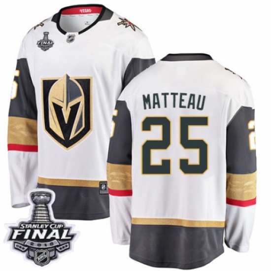>Men's Vegas Golden Knights #25 Stefan Matteau Authentic White Away Fanatics Branded Breakaway 2018 Stanley Cup Final NHL Jersey