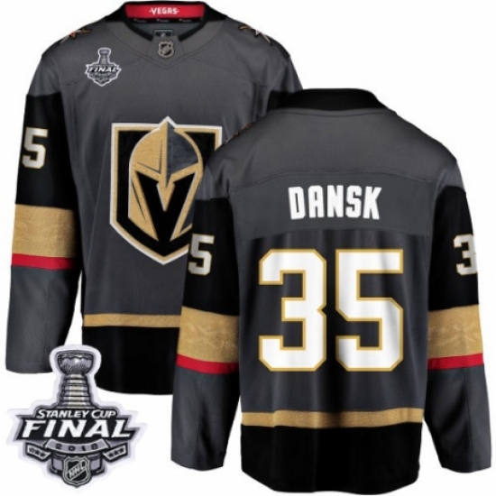 >Men's Vegas Golden Knights #35 Oscar Dansk Authentic Black Home Fanatics Branded Breakaway 2018 Stanley Cup Final NHL Jersey