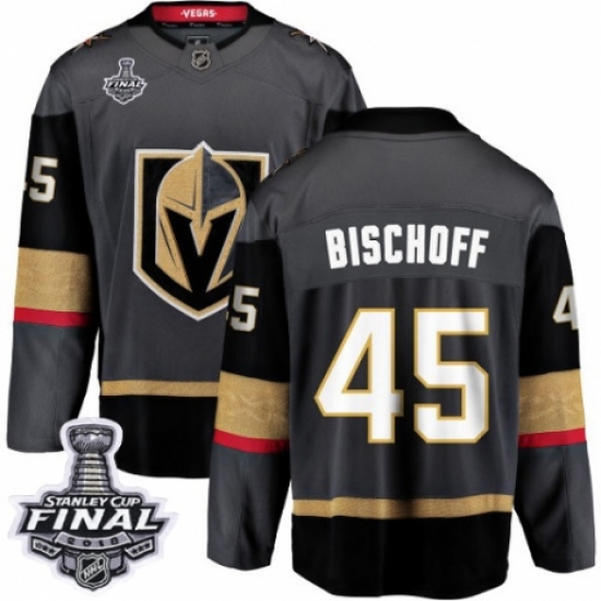 >Men's Vegas Golden Knights #45 Jake Bischoff Authentic Black Home Fanatics Branded Breakaway 2018 Stanley Cup Final NHL Jersey