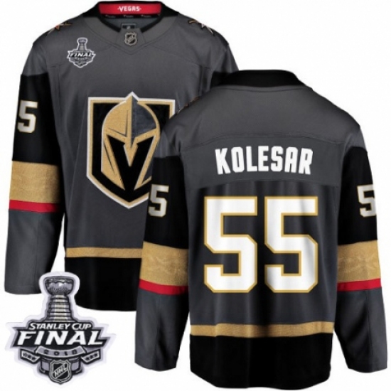 >Men's Vegas Golden Knights #55 Keegan Kolesar Authentic Black Home Fanatics Branded Breakaway 2018 Stanley Cup Final NHL Jersey