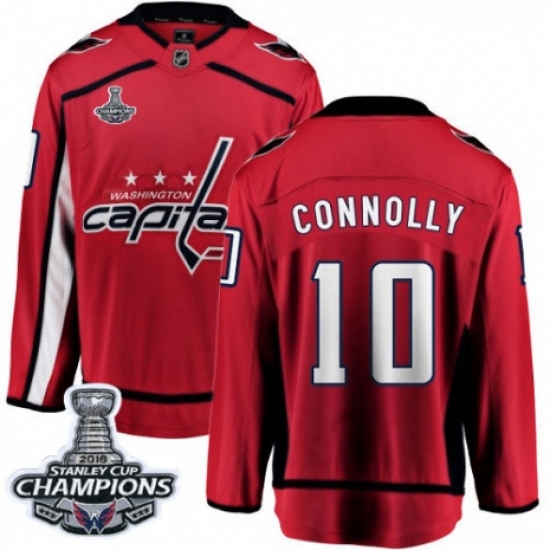 >Men's Washington Capitals #10 Brett Connolly Fanatics Branded Red Home Breakaway 2018 Stanley Cup Final Champions NHL Jersey