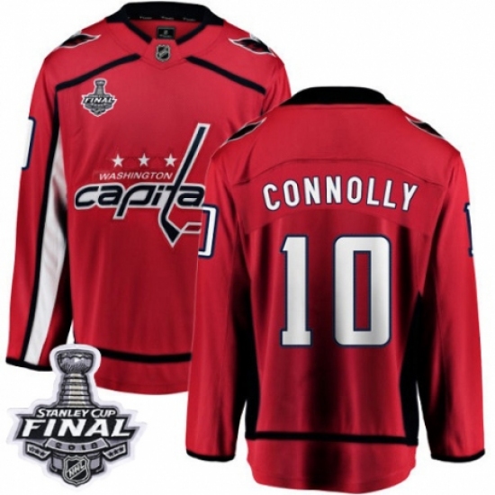 >Men's Washington Capitals #10 Brett Connolly Fanatics Branded Red Home Breakaway 2018 Stanley Cup Final NHL Jersey
