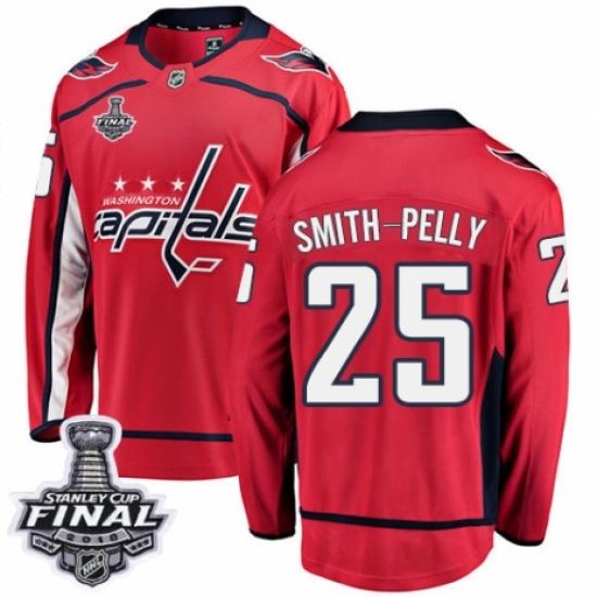 Men's Washington Capitals #25 Devante Smith-Pelly Fanatics Branded Red Home Breakaway 2018 Stanley Cup Final NHL Jersey