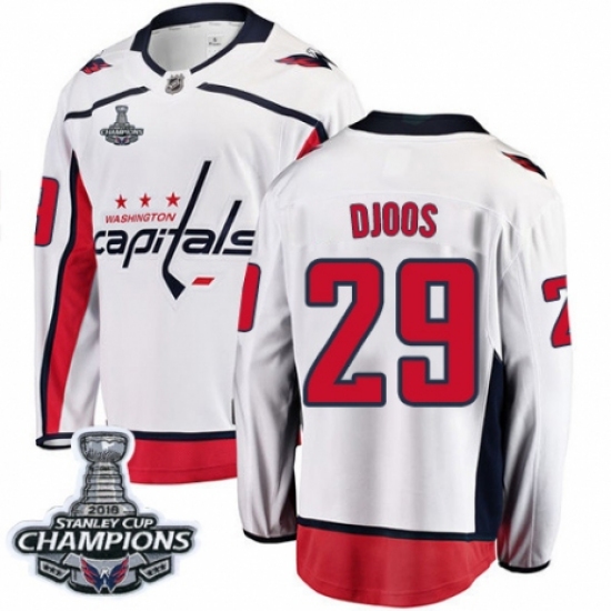 Men's Washington Capitals #29 Christian Djoos Fanatics Branded White Away Breakaway 2018 Stanley Cup Final Champions NHL Jersey