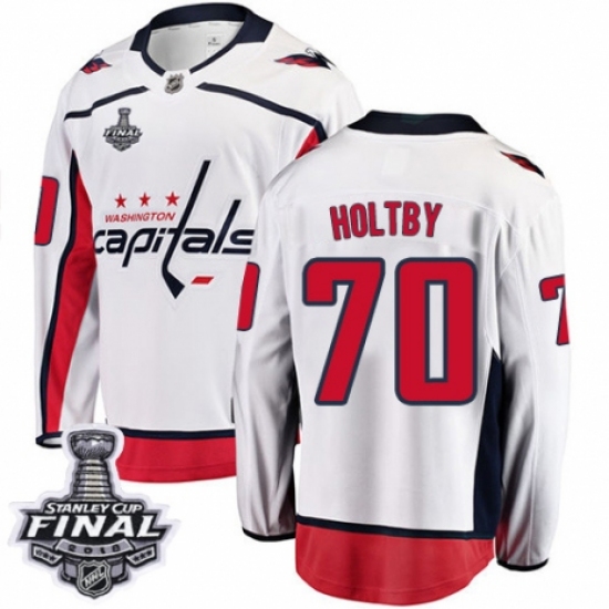 Men's Washington Capitals #70 Braden Holtby Fanatics Branded White Away Breakaway 2018 Stanley Cup Final NHL Jersey