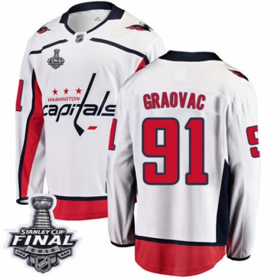 Men's Washington Capitals #91 Tyler Graovac Fanatics Branded White Away Breakaway 2018 Stanley Cup Final NHL Jersey