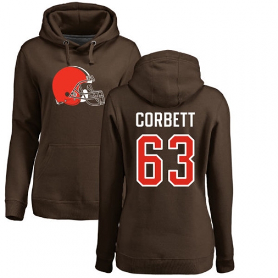 NFL Women's Nike Cleveland Browns #63 Austin Corbett Brown Name & Number Logo Pullover Hoodie