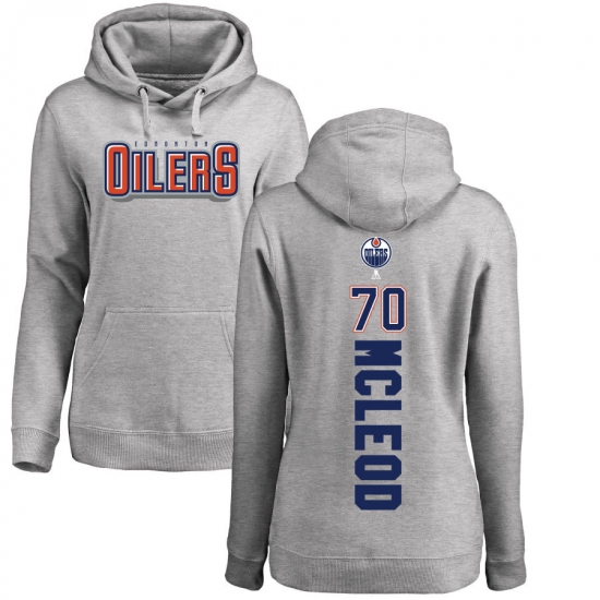 >NHL Women's Adidas Edmonton Oilers #70 Ryan McLeod Ash Backer Pullover Hoodie