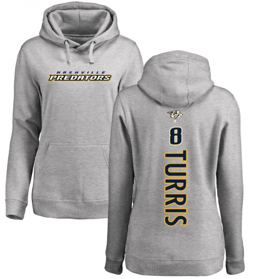 NHL Women's Adidas Nashville Predators #8 Kyle Turris Ash Backer Pullover Hoodie