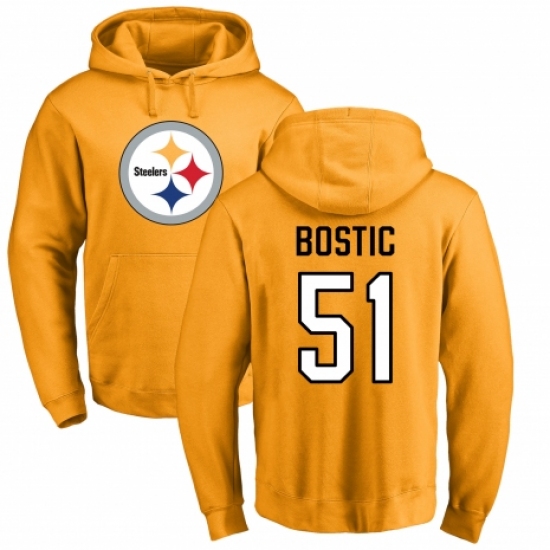 >Nike Pittsburgh Steelers #51 Jon Bostic Gold Name & Number Logo Pullover Hoodie