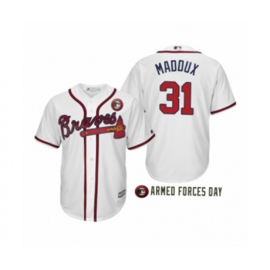 >Women 2019 Armed Forces Day Greg Maddux #31 Atlanta Braves White Jersey