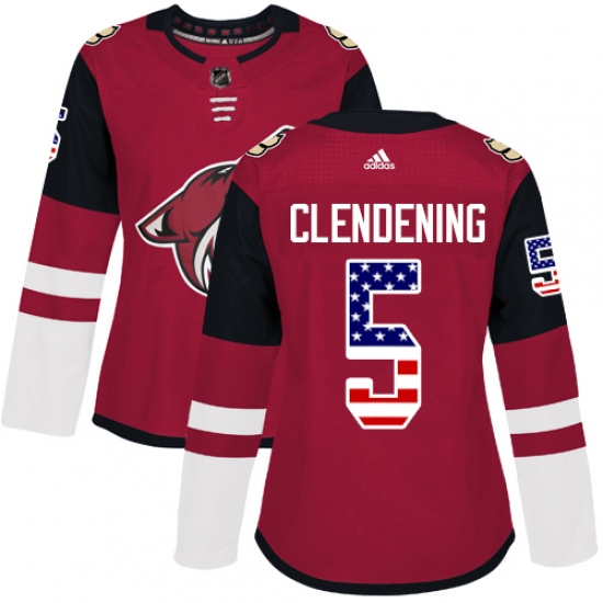 >Women's Adidas Arizona Coyotes #5 Adam Clendening Authentic Red USA Flag Fashion NHL Jersey