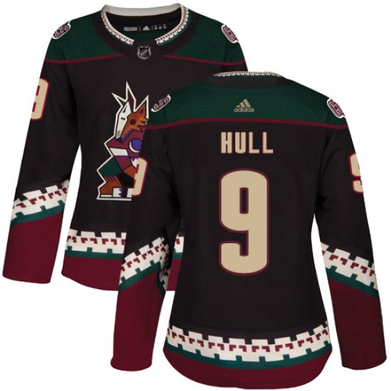 >Women's Adidas Arizona Coyotes #9 Bobby Hull Authentic Black Alternate NHL Jersey