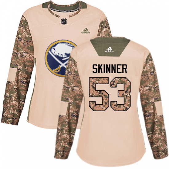>Women's Adidas Buffalo Sabres #53 Jeff Skinner Camo Authentic 2017 Veterans Day Stitched NHL Jersey