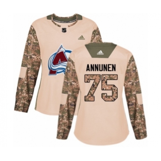 >Women's Adidas Colorado Avalanche #75 Justus Annunen Authentic Camo Veterans Day Practice NHL Jersey