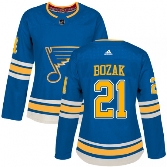 Women's Adidas St. Louis Blues #21 Tyler Bozak Authentic Navy Blue Alternate NHL Jersey
