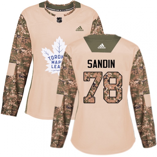 >Women's Adidas Toronto Maple Leafs #78 Rasmus Sandin Authentic Camo Veterans Day Practice NHL Jersey