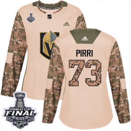Women's Adidas Vegas Golden Knights #73 Brandon Pirri Authentic Camo Veterans Day Practice 2018 Stanley Cup Final NHL Jersey