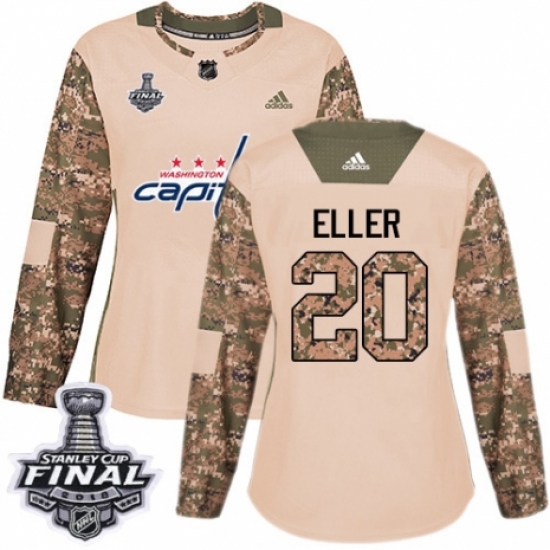 >Women's Adidas Washington Capitals #20 Lars Eller Authentic Camo Veterans Day Practice 2018 Stanley Cup Final NHL Jersey