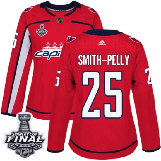 >Women's Adidas Washington Capitals #25 Devante Smith-Pelly Authentic Red Home 2018 Stanley Cup Final NHL Jersey