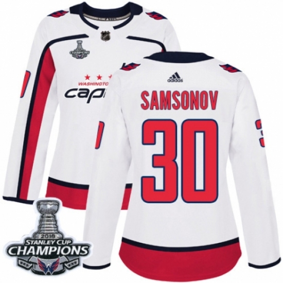 Women's Adidas Washington Capitals #30 Ilya Samsonov Authentic White Away 2018 Stanley Cup Final Champions NHL Jersey