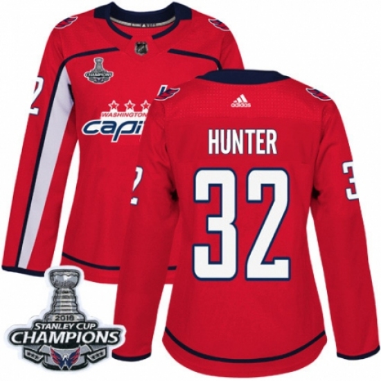 Women's Adidas Washington Capitals #32 Dale Hunter Authentic Red Home 2018 Stanley Cup Final Champions NHL Jersey