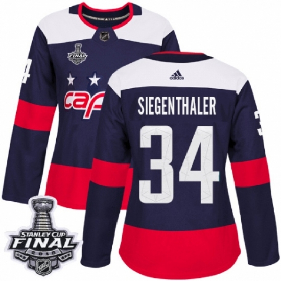 >Women's Adidas Washington Capitals #34 Jonas Siegenthaler Authentic Navy Blue 2018 Stadium Series 2018 Stanley Cup Final NHL Jersey