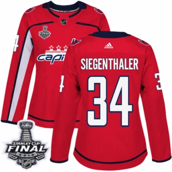 >Women's Adidas Washington Capitals #34 Jonas Siegenthaler Authentic Red Home 2018 Stanley Cup Final NHL Jersey